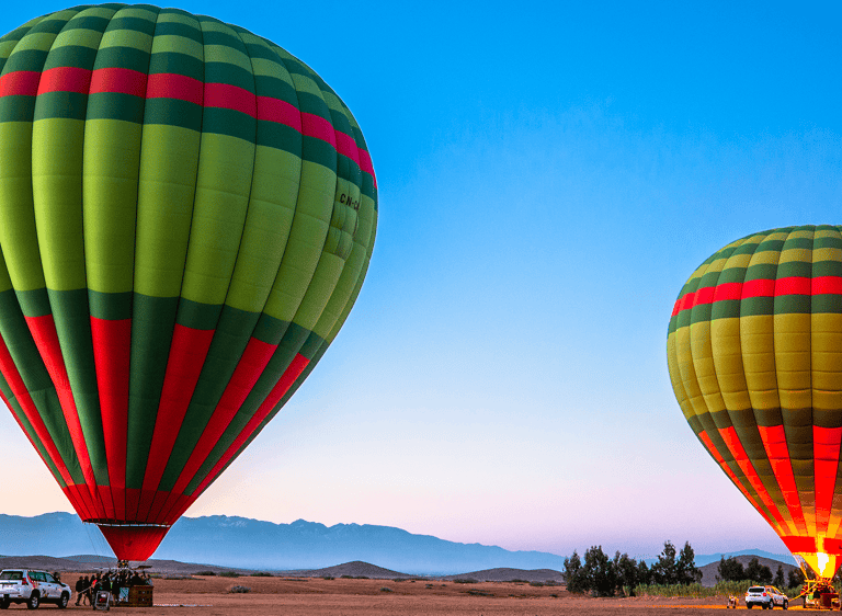Steh früh auf und heb ab zu einem unvergesslichen Abenteuer in den Himmel von Marrakesch! Erlebe eine der aufregendsten Outdoor-Aktivitäten: eine Fahrt im Heißluftballon bei Sonnenaufgang. Genieß den Blick aus der Vogelperspektive auf die Stadt, den Palmenhain und die Weite der Landschaft – alles mit höchstem Komfort und voller Sicherheit. Ein magisches Erlebnis, das du so schnell nicht vergessen wirst.